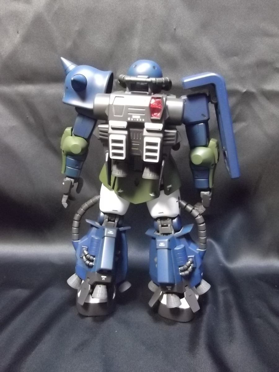 プレバンで買ったやつではなく、当時3割引きで売ってたマツナガザクの色替えです。黒い三連星ザクが売り切れだったので、こいつでいいや!と買ったやつです。作りながら気が付いたのですが、足のスラスターがチョット違うみたいですね。まぁいっか!